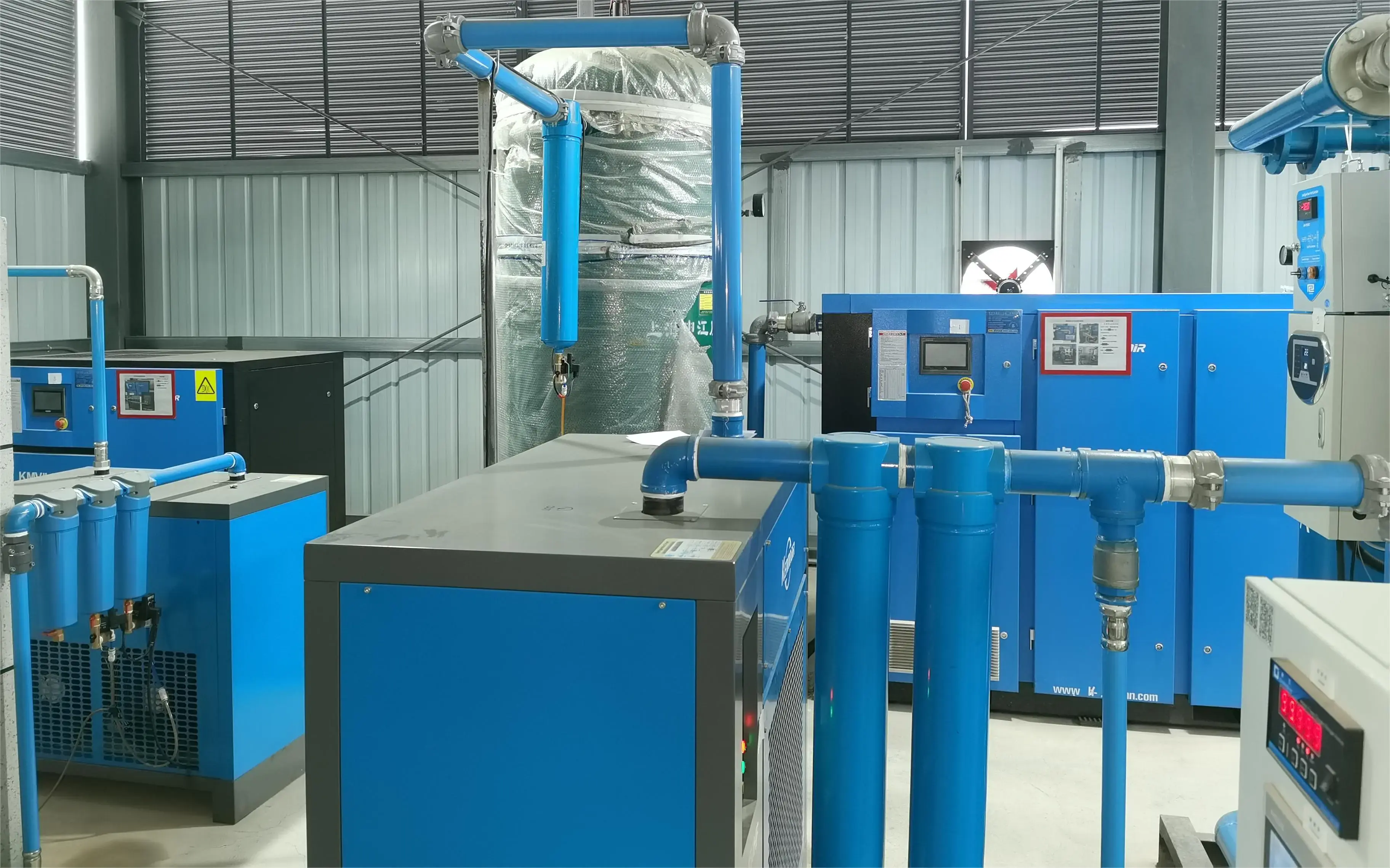 產(chǎn)品出廠時,機器中已充滿壓縮機油,若安裝就位后,接通電源,即可投入運行,通過帶背光的液晶屏幕,清晰的現(xiàn)實機器的運行狀態(tài)。